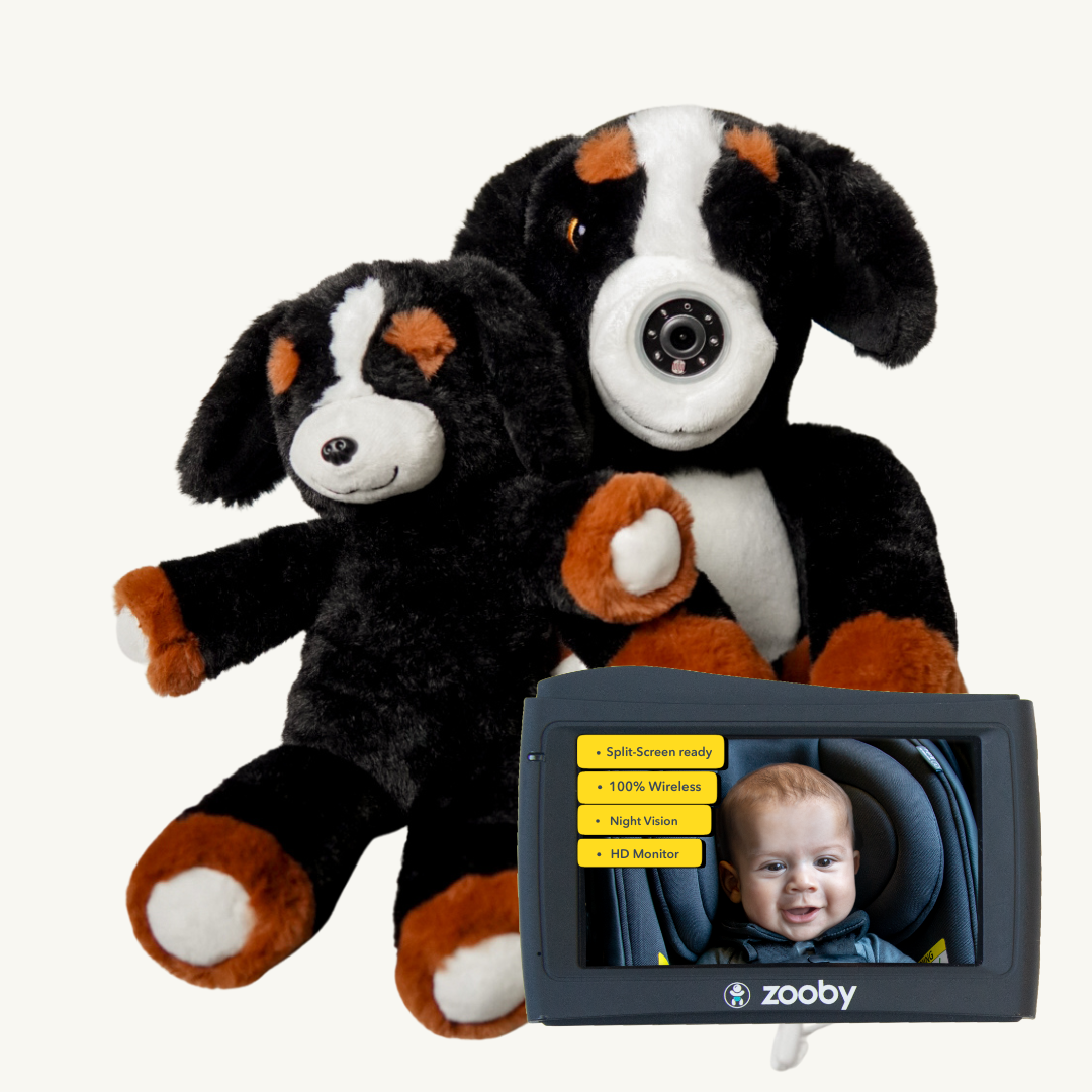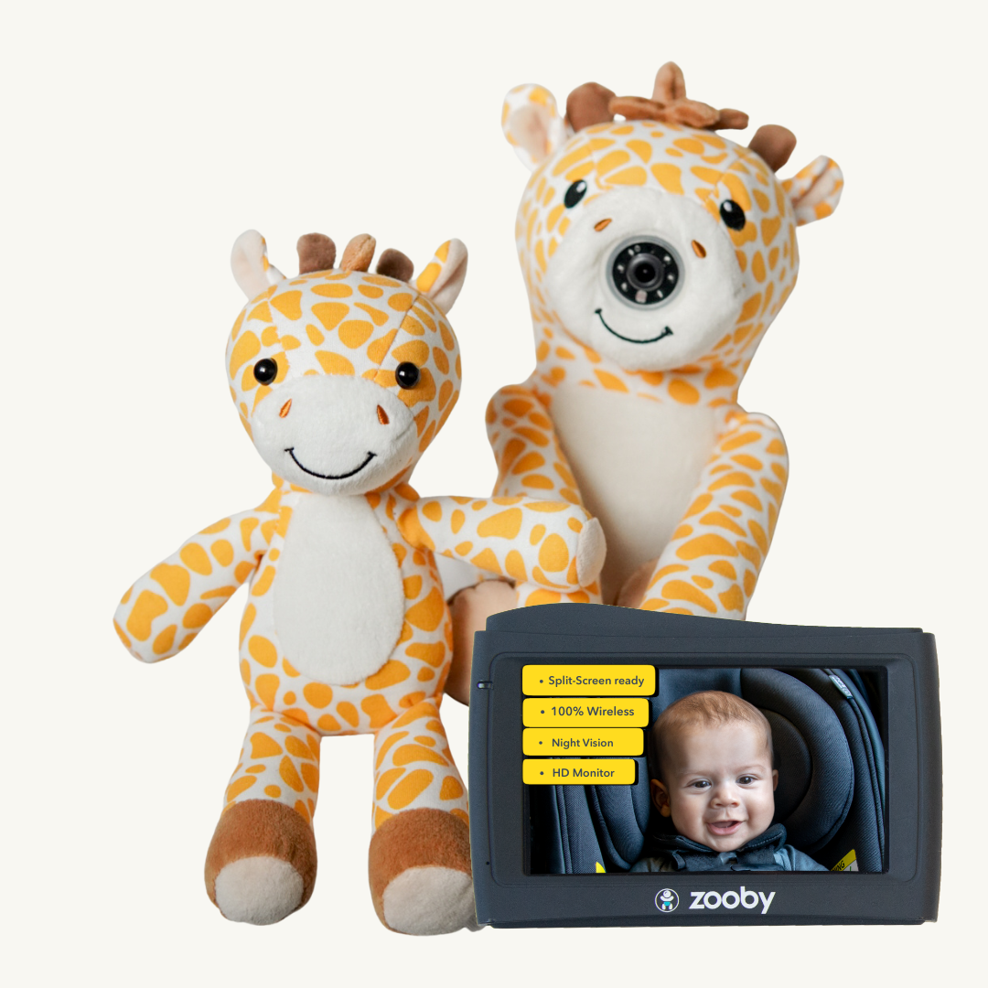 Baby stays happy: Matching zooby mini occupies hands, soothes fussiness with familiar face.